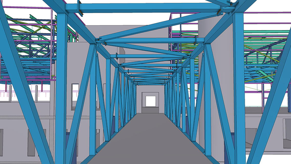 - Deux des bâtiments présentent des poutres-treillis de 3m de hauteur, et de 25m et 22m de portée.