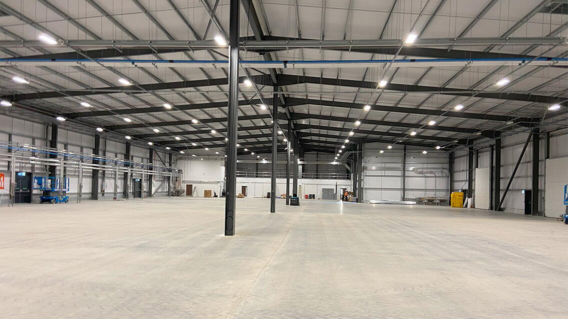 The works involved in this project involved the supply and installation of 510 precast concrete driven piles followed by the installation of BHC’s Valued Engineered Steel Frame, all of which was fabricated in BHC’s own factory controlled environment before being delivered to site. Subsequently, the external roof and wall cladding works commenced, culminating in the pouring of a 5,000m² fibre-reinforced concrete floor.